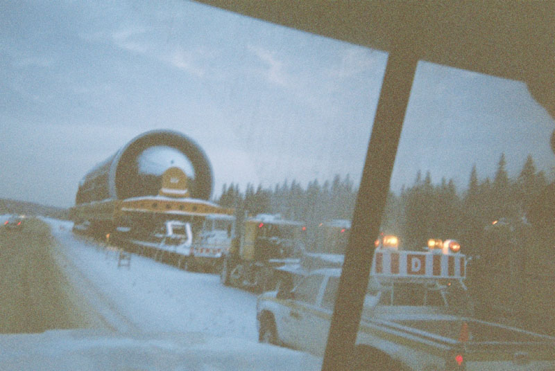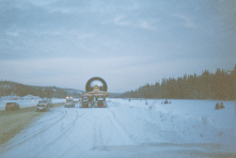 This picture along with the next 2 was hauled through Ft. McMurray took 5 trucks to move it at the speed of 15 km/hr and this came from Edmonton long trip!!